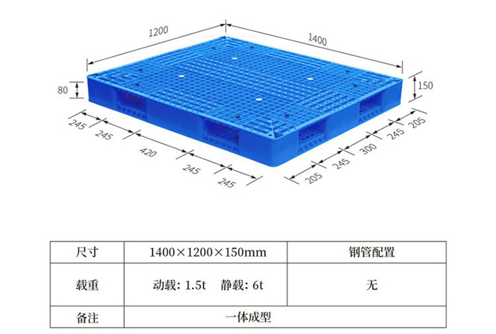 1412網格雙面托盤是一種與叉車、貨架等物流設備配套使用的物流單元。可用來存放、裝載、搬運貨物,是現代化物流倉儲中必不可少的物流設備之一。塑料托盤的出現是適應環保需要,使用塑料托盤代替木托盤可減少對森林破壞的佳產品;是適應物流業發展的必然產物,隨著食品安全觀念的不斷強化,醫藥行業衛生性的高要求,塑料托盤以其防腐、防潮濕、防銹蝕、抗蟲蛀、不發霉等特點受到食品、醫藥行業的青睞和追捧。此外,塑料托盤的承載性能高和使用壽命長等特點,在化工、輕紡、制造業等領域有著廣泛的應用。