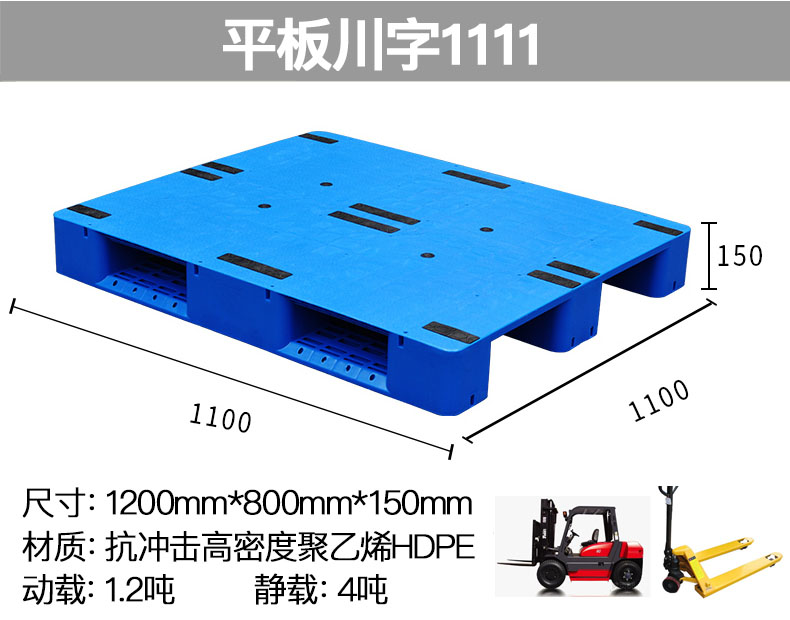 川字平板塑料托盤可以內置多跟加粗鋼條,增加托盤承重能力,廣泛的適用于工廠、倉庫、運輸、物流、化工、食品等行業。它的支撐設計,可以使得產品可以更加好的均勻承重,平均承重力承重更加強,方便叉車使用。