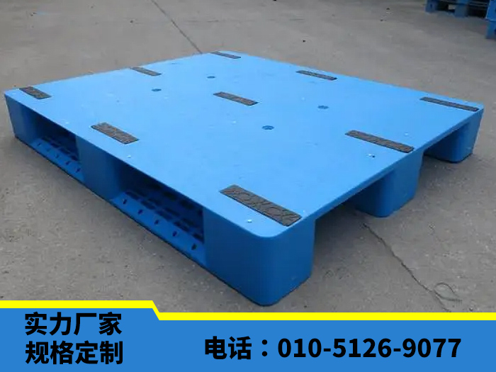 一般川字平板塑料托盤的動載在1T左右,要是在內部加入鋼管,可達到1.5T左右。