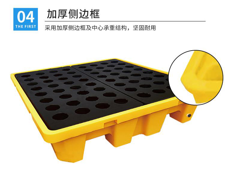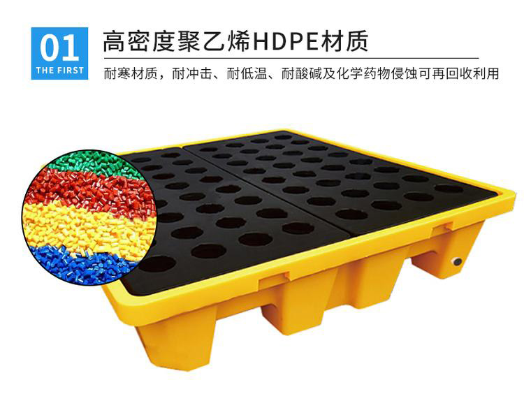 防滲漏塑料平臺是使用純原料聚乙烯HDPE注塑而成,原料PE是一種結晶度高,非極性的熱塑性塑料,具有良好的耐高低溫,耐酸堿,耐腐的特性,這種材質常用與制造塑料包裝制品。