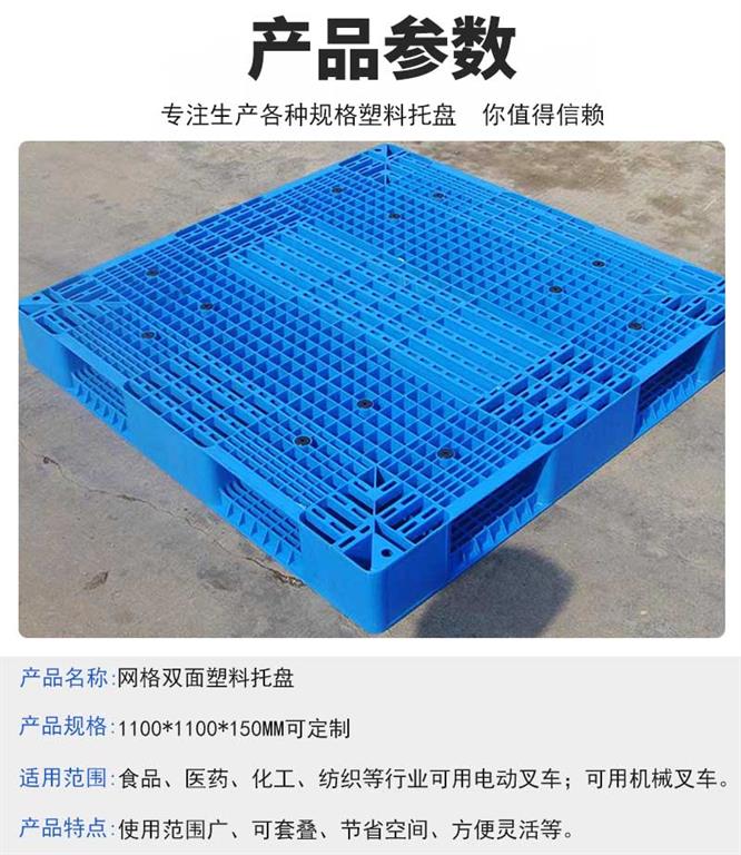 3.雙面網格塑料托盤耐酸堿,耐老化,使用時間長等優點;